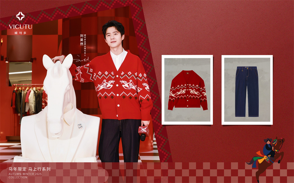 年关将近,聚会扎堆,你是不是也开始为“新年穿什么”发愁?这个12月,「VICUTU新年衣橱」天马型游限时沉浸空间在北京为你带来了答案——全新“马上行”新年生肖系列。值得关注的是,VICUTU品牌全球代言人刘昊然日前已在该活动中率先上身该系列,从充满民族风情的图案单品到高级实穿的暖调红,他现场演绎的多套造型,不仅展现了系列的好搭实穿,更兼具仪式感与松弛感,在社交平台掀起了一阵“新年红运”穿搭风潮。