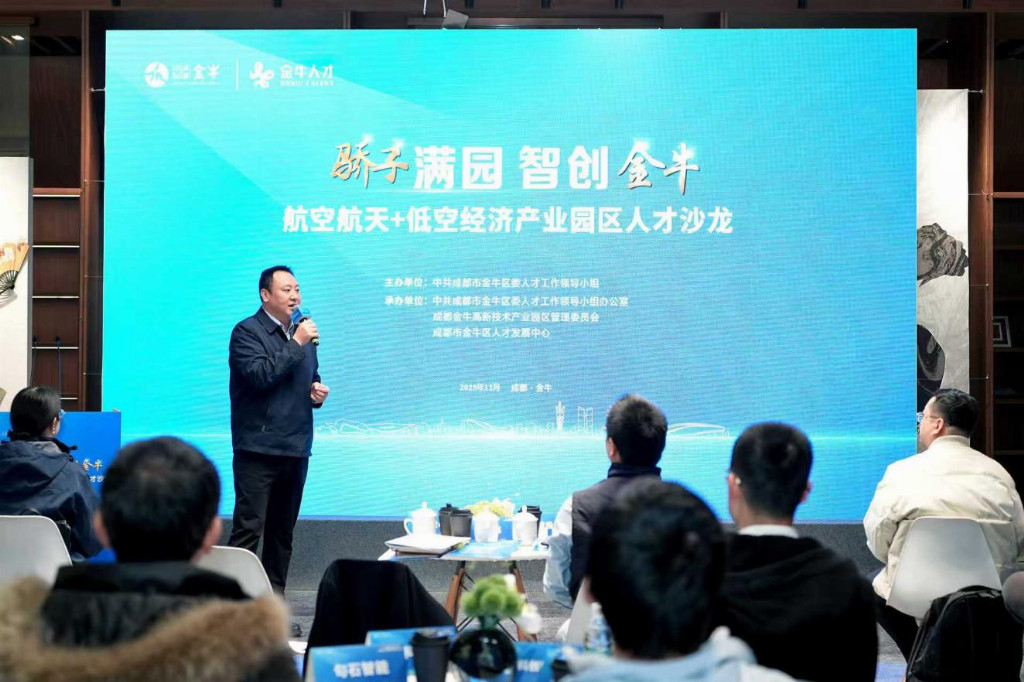 为高质量推动人才科技成果赋能产业园区发展,2025年12月16日,金牛区举办首场“骄子满园 智创金牛”产业园区人才沙龙——“航空航天+低空经济”专场活动。本次活动由中共成都市金牛区委人才工作领导小组主办,中共成都市金牛区委人才办、高新园区管委会、金牛区人才发展中心联合承办,定向邀请了20位人才(团队)项目代表与区内链主龙头企业、专业投资机构、区级相关部门和街道齐聚一堂,聚焦人才、产业、科技等领域开展深入交流。活动旨在搭建“政企才”高效对接的开放平台,促进高层次人才创新创业,为金牛区经济高质量发展注入人才动能。
